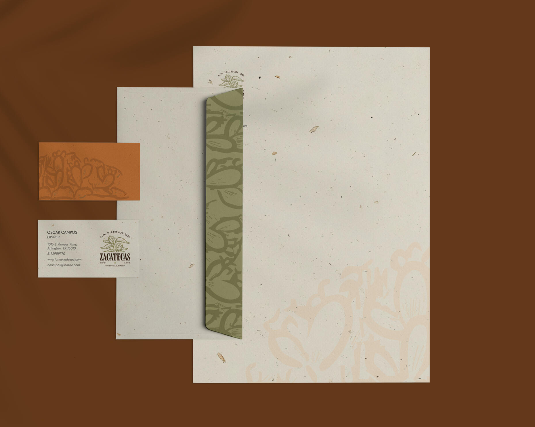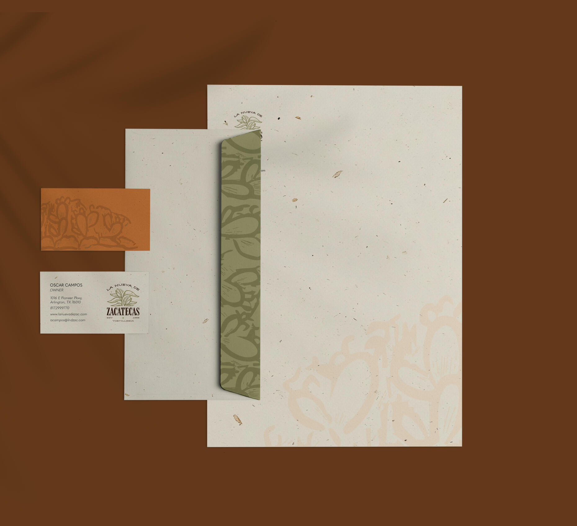 Based on an existing logo. This redesign consisted of recreating the logo and a stationery set. With this project creating a logo that told the story of the business was important. The corn is used to represent tortillas and the muted earthy colors helped tell the story of a old yet home-like aesthetic.