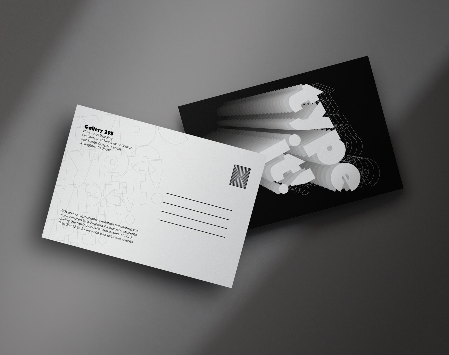 An identity for a UTA Type Exhibition. Which included a poster, postcard, and other relating ephemera.